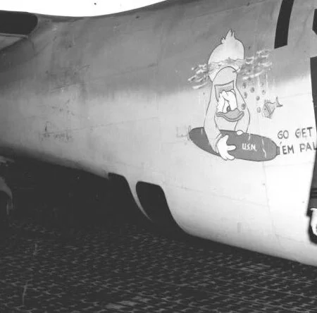 Many Venturas of the early batches were decorated with Disney-themed artwork. The Vega plant in Burbank, CA was located not far from the Disney studio which explains the beginning of the tradition. Interestingly enough, even more themes for the fuselage artwork were suggested by the Vega employees. (More about it). The tradition of the fuselage art continued with later PV-1 series, throughout 1944. Enjoy some of the authentic examples on the photos below. If you happened to have other photos of Ventura’s fuselage art, I’d be very interested to see them, too!