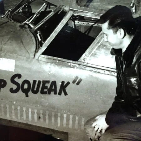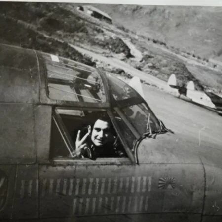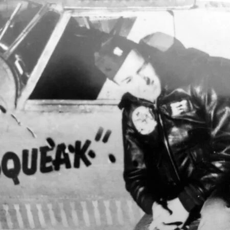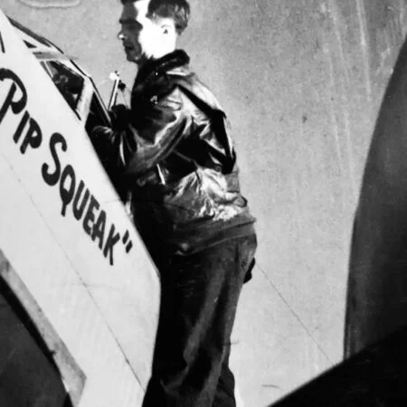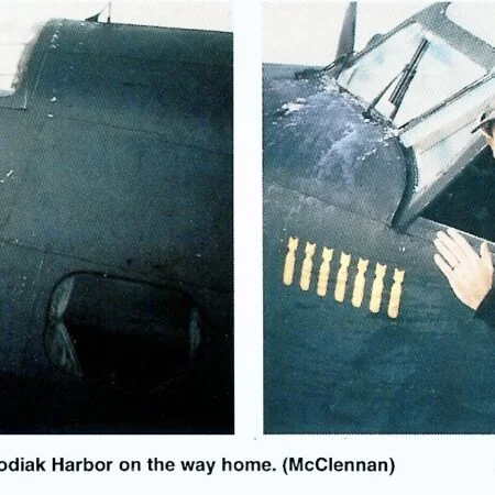 One of them was BuNo 33110, a former 1V of VB-136. It had six mission marks painted on the tail, and was used as a backdrop for the photos of VB-139 in early June of 1944. After the completion of the 1943 tour, this aircraft was transferred to Headquarters Squadron (Hedron) where it remained through the summer of 1944. On 23-26 of October, 1944, it was flown to Whidbey island by “Pat” Patteson. who was also known as “Pip Squeak” among his squadron mates. Pat’s nickname was duly reflected on the port side of the cockpit prior to the ferry flight from Attu to NAS Whidbey Island.