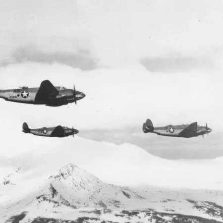 Production of a PV-1 “Ventura” patrol bomber (Lockheed Model 237-27-01) was started in Burbank, CA in December 1942. The first US Navy squadrons equipped with PV-1 aircraft in the North Pacific were VB-135 and VB-136 deployed to the Aleutians. Their planes inherited several features from British Venturas, such as a “greenhouse” in the nose and rudimentary copilot seat, to allow the access to the bombardiers workplace. However, the nose compartment in these aircraft was occupied by a radar and provisions for aerial cameras installation.
