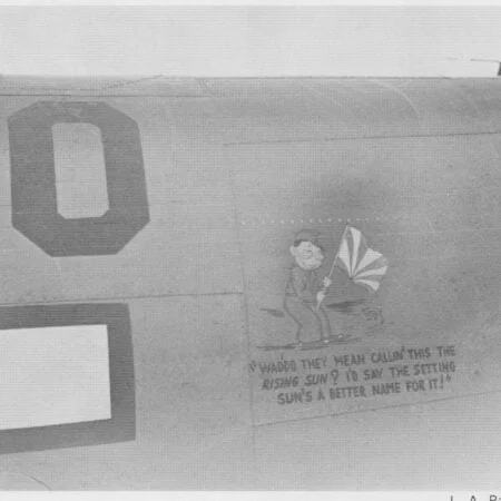 Many formal U.S. Navy crew photos of Empire Express squadrons had been taken by the tail of a PV-1 decorated with colorful mission marks. Interestingly, none of the four veterans of both VB-139 and VB-135 I communicated with, could not remember such markings painted on their battle planes. “Pat” Patteson has confirmed their squadron photos had been taken in front of a specially decorated plane. Analysis of the photographs confirmed that only two Venturas were decorated in such way, specifically for the purpose of a group photography of VB-139 and VB-135 in May and June of 1944.