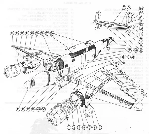 Конструкция консолей аналогична центроплану, за исключением того, что в них имелся только один вспомогательный лонжерон – задний, а стрингеры стояли и под гофрированной обшивкой сверху.