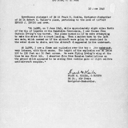 Командир 11-й Воздушной армии генерал майор Уильям Батлер (William Butler) писал начальнику штаба Воздушного Корпуса армии США генералу Генри Арнольду (Henry “Hap” Arnold) 16 июня: “В эскадрилии несколько дней царило настоящее сумасшествие, летчики преследовали и врагов и друзей. Наши самолеты случайно обстреляли русский транспорт, полагая, что он идет под японским флагом. К счастью, никто не пострадал. Один из пилотов забыл поставить пулеметы на предохранитель, и при посадке в Оттер Пойнте нечаянно дал очередь вдоль полосы”.